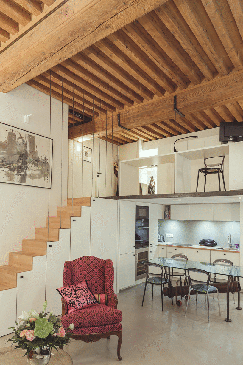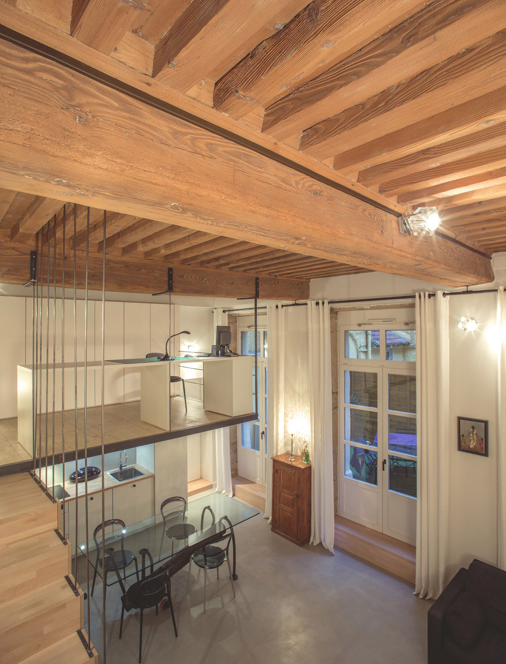 Cet appartement canut en rez-de-chaussée, typique du quartier de la Croix-Rousse, s’ouvre sur une cour intérieure privative. Les nouveaux acquéreurs souhaitaient transformer les lieux en exploitant la belle hauteur sous plafond.